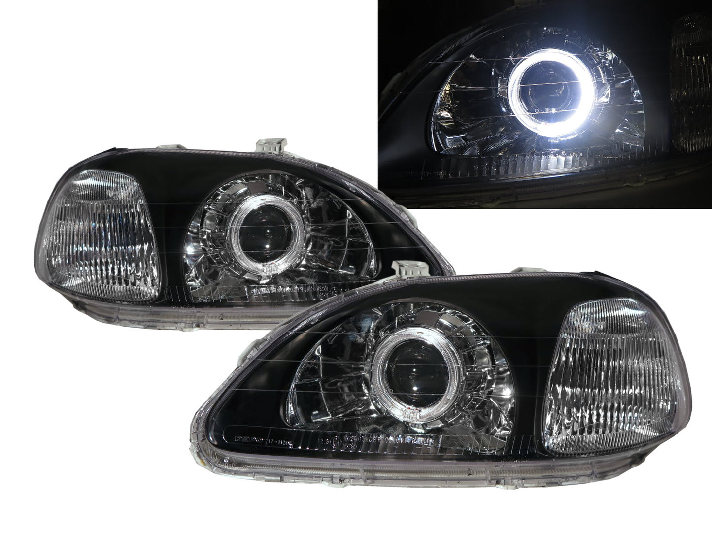 CrazyTheGod Civic EJ/EK/EM Sixth generation 1996-1998 Pre-Facelift Sedan/Hatchback/Coupe 2D/3D/4D/5D Guide LED Angel-Eye Projector Headlight Headlamp Black for HONDA RHD