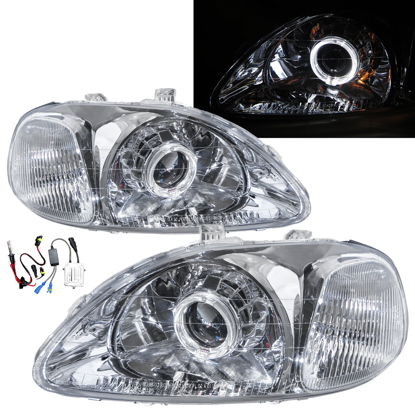 CrazyTheGod Civic EJ/EK/EM Sixth generation 1996-1998 PRE-FACELIFT Sedan/Hatchback/Coupe 2D/3D/4D/5D Guide LED Angel-Eye Projector Headlight Headlamp Chrome for HONDA RHD