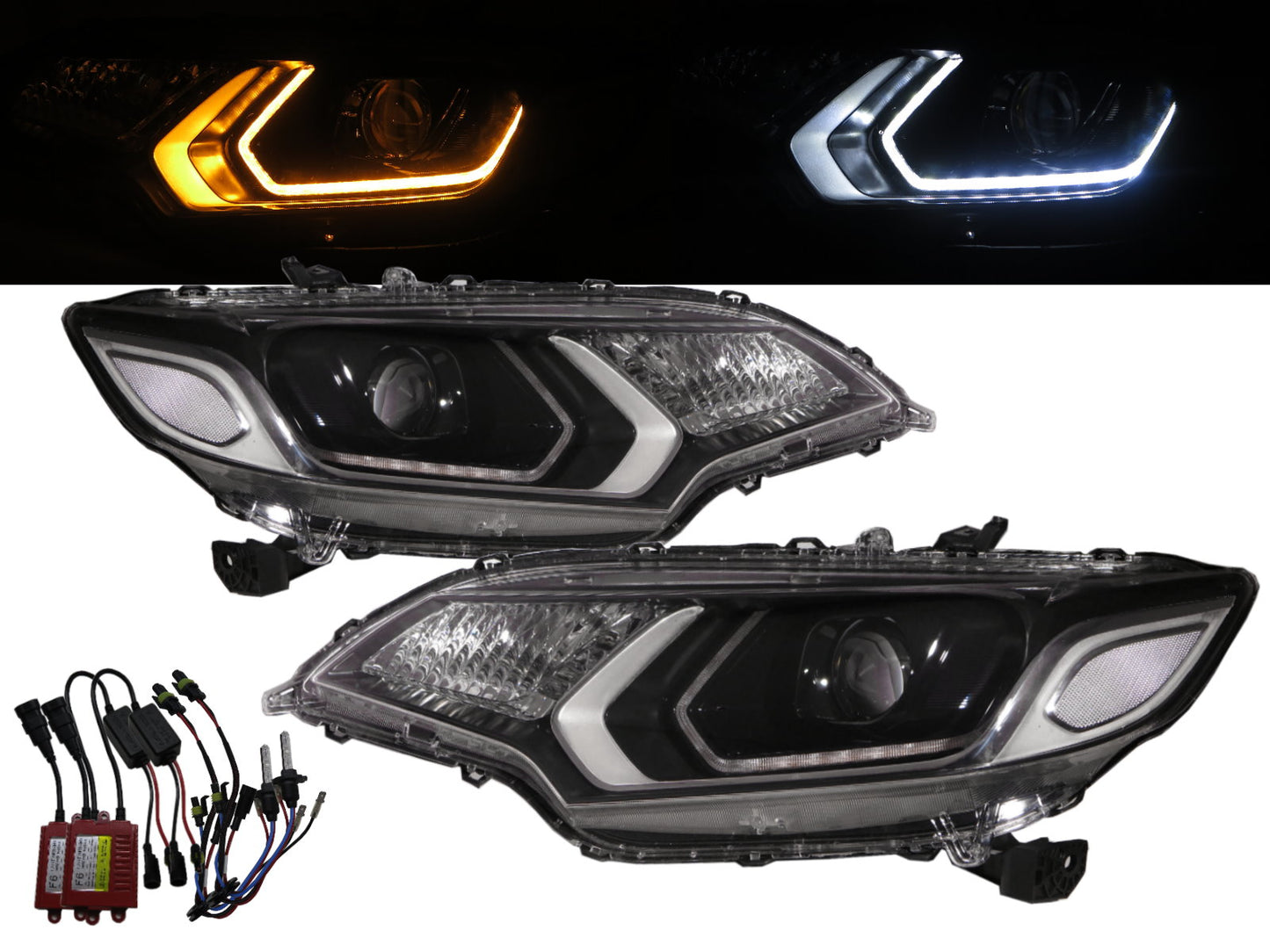 CrazyTheGod FIT/JAZZ Third generation 2013-present Hatchback 5D LED Projector D2H W/S Ballast Headlight Headlamp Black for HONDA RHD